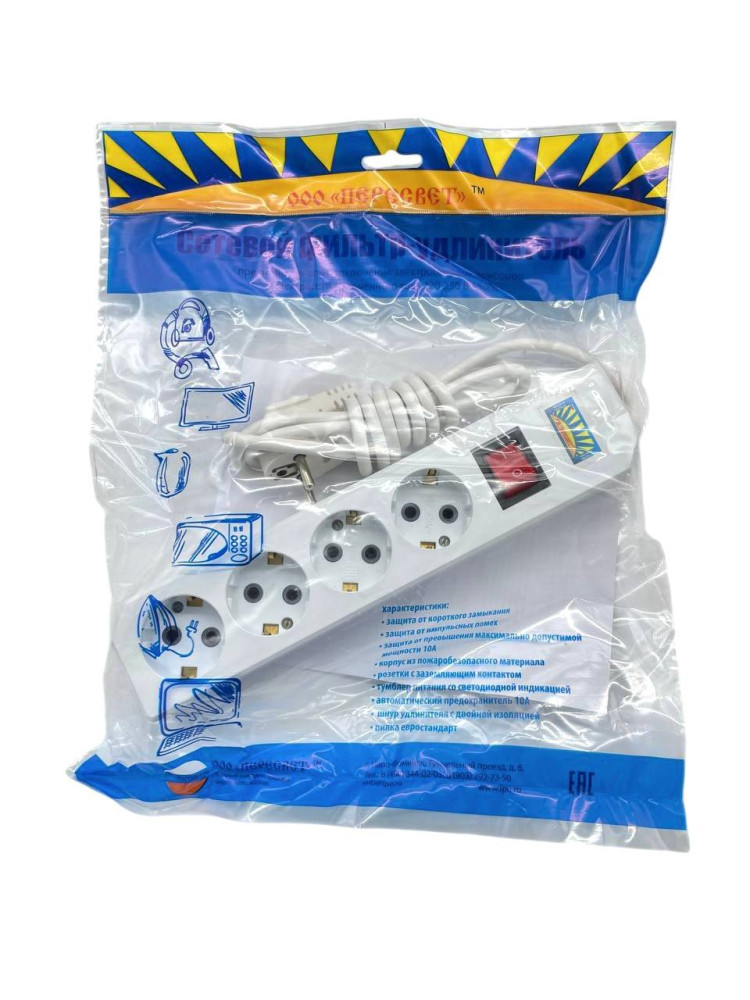 Удлинитель ПЕРЕСВЕТ 3гн.*3м С/З (30 шт) ПВС 3*0.75